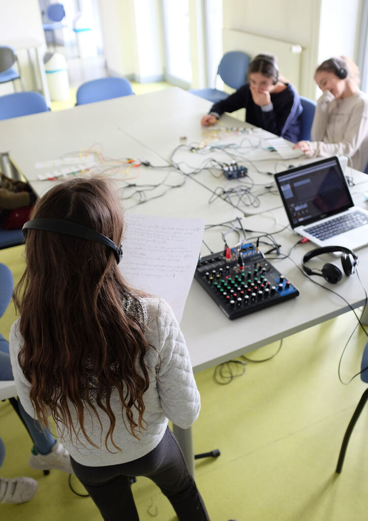 Une fois l’histoire finalisée, elle est racontée, collectivement et en direct grâce à la « Touch Board ». Les participant.e.s sont ainsi autonomes au moment du « live » pour lancer les éléments de bruitage qui l’illustre l’histoire.